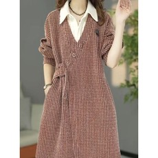 高档雪花绒时尚拼接假两件礼服裙2025秋季新款洋气显瘦遮肉连衣裙