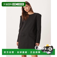1h可退 香港直邮ASOS 女士 设计精细剪裁垫肩直筒连衣裙(黑色)