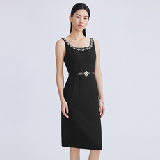VB法式浪漫 流光溢彩 荡领串珠45度斜裁吊带裙修身显瘦A字连衣裙