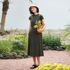 布小匠原创设计新款桑蚕丝绢纺香云纱绣花旗袍女新中式显瘦连衣裙
