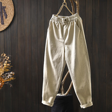 2025新款棉麻九分裤大码女夏季宽松显瘦文艺哈伦萝卜裤~外贸清仓