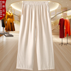 棉麻七分裤女夏季薄款亚麻中老年人大码休闲裤显瘦宽松高腰哈伦裤