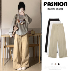白色棉麻阔腿裤女春秋季025新款小个子高腰显瘦宽松牛仔休闲裤子