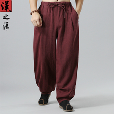 亚麻九分裤男2024春夏新款中国风男士棉麻束脚裤宽松直筒休闲裤子