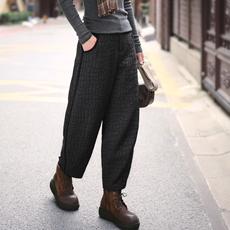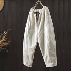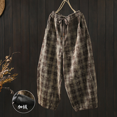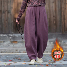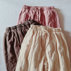 园园美衣冬季复古100%加绒萝卜裤系带松紧腰宽松加厚保暖气球裤