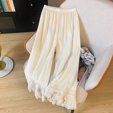 日系清新蕾丝花边拼接叠穿阔腿裤女夏季新款甜美森系棉麻打底裤子