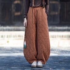 2025冬季新款加棉裤莱塞尔阔腿裤女柔软细旦棉绗棉棉裤复古萝卜裤
