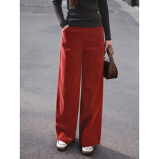 2025新款灯芯绒裤子纯棉条绒阔腿裤女款瑞雪红直筒裤大长腿休闲裤
