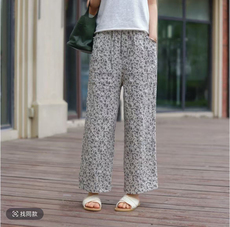 早春新品14支亚麻雨露麻印花文艺休闲清凉显瘦九分阔腿小花裤2573