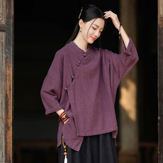 唐装女复古棉麻中国风中式民国风禅意茶人服文艺斜襟盘扣上衣女装