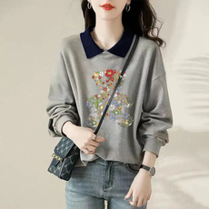 外贸出口品牌清仓纯棉时尚长袖翻领卫衣女春秋款百搭显瘦拼色上衣