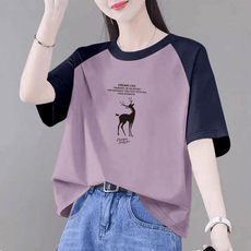 外贸女装大牌清仓100%纯棉休闲短袖t恤女大码显瘦气质宽松上衣夏