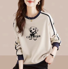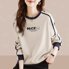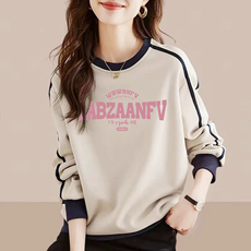 外贸出口女装春秋纯棉圆领套头卫衣女秋季打底衫慵懒宽松拼色上衣