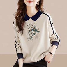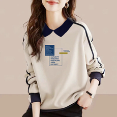 外贸出口正品纯棉长袖翻领时尚卫衣女春秋款文艺减龄休闲显瘦上衣
