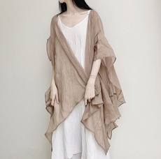 国风文艺飘逸中长款开衫女宽松春夏防晒衫前短后长设计感轻薄外搭
