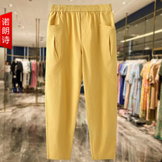 哈伦裤女2024新款春秋高腰休闲棉麻大码萝卜卫裤中年妈妈装九分裤