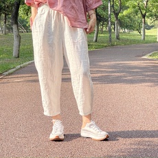 清仓捡漏~日系棉麻奶奶裤女夏季新款直筒裤子阔腿休闲九分香蕉裤