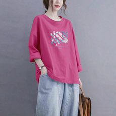 清仓捡漏~100%纯棉女装高品质长袖T恤宽松时尚洋气显瘦减龄上衣潮