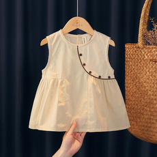 女童衬衫2025新款法式小女孩娃娃衫儿童无袖连衣裙女宝宝纯棉上衣