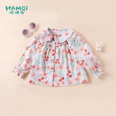 女童春秋装新款长袖娃娃衫纯棉碎花衬衣衬衫女宝宝甜美印花上衣潮