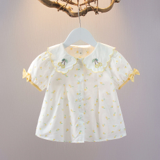 女童夏季短袖衬衫1-4岁女宝宝娃娃领碎花薄款衬衣小童棉布上衣潮