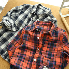 儿童韩版格子麻棉衬衫春秋款男童女童衬衣上衣宝宝宽松百搭外套潮