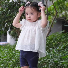 女童短袖衬衫法式娃娃衫夏季女宝宝蕾丝公主上衣小童洋气半袖衬衣