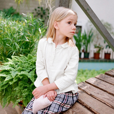 伊顿兰诗同款中小学女童长袖衬衫白色圆领斜纹百搭打底纯棉春秋冬