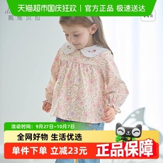 戴维贝拉儿童衬衫2025春装新款女童甜美休闲纯棉长袖碎花衬衣上衣