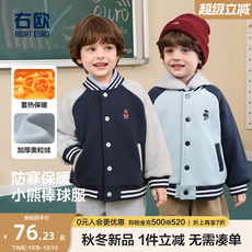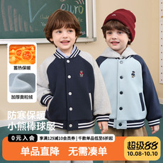 右欧男童女童加绒棒球服外套小熊系列秋冬季新款童装儿童保暖上衣