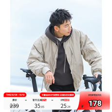 太平鸟男装 美式飞行员夹克羽绒服男短款冬季保暖防寒棒球领外套