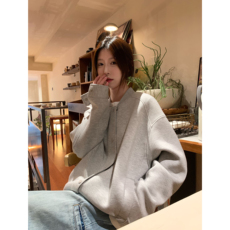 灰色立领卫衣外套女款秋季2025新款韩系慵懒风宽松棒球服休闲上衣