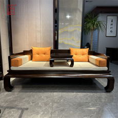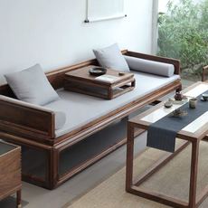 墨兰新中式禅意实木罗汉床黑胡桃木榆木现代客厅床榻沙发床卧榻