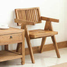 老榆木门板昌迪加尔椅侘寂风复古靠背椅实木扶手椅家用书桌餐桌椅