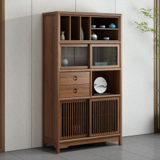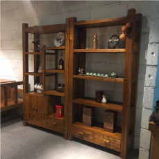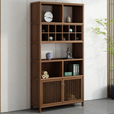 新中式博古架立柜书架格子茶叶柜展示柜茶边柜高柜实木榆木胡桃色