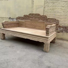 中式全实木罗汉床老榆木沙发床推拉伸缩罗汉榻白茬白胚白坯维拉床