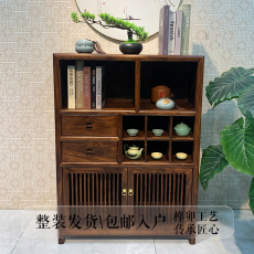 老榆木实木博古架茶室茶叶茶具架多宝阁胡桃新中式餐边柜储物柜