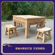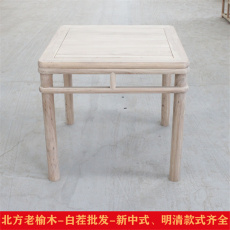 新中式免漆老榆木餐桌白茬白胚白坯小方桌长方形酒店民宿实木家具
