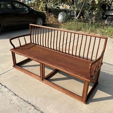 新中式实木长条椅北方老榆木禅意打坐椅双人椅三人梳背仿古沙发椅
