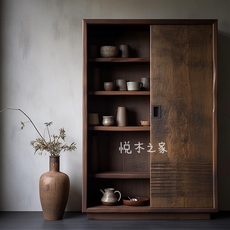 侘寂风柜子老榆木边柜实木柜子博古架餐边柜茶叶架子多宝阁置物架