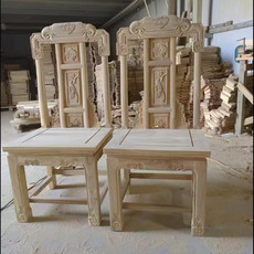 全实木餐椅白茬北榆木单背椅圆桌椅白胚坯中式仿古象头国色天香椅