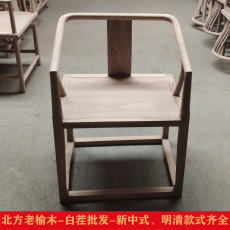 新中式实木白茬白胚白坯老榆木圈椅太师椅餐椅官帽茶椅子家具禅椅