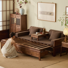 北美黑胡桃木新中式全实木罗汉床伸缩沙发床两用老榆木贵妃塌床榻