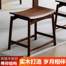 新中式实木方凳北方榆木禅意茶凳饭店家用简约板凳矮凳换鞋凳白茬