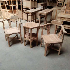 老榆木中式全实木三角椅三件套家具情人椅白茬圈椅靠背椅白坯白胚