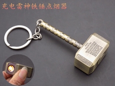 充电打火机创意个性金属雷神铁锤榔头防风钨丝男士便携挂件点烟器