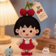 手工编织可爱樱桃小丸子玩偶diy毛线钩织材料包钥匙扣挂件送礼物