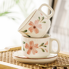 植述中式手绘春野樱花陶瓷咖啡杯小清新喝茶杯陶瓷美式拉花拿铁杯
