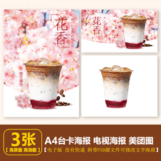 樱花拿铁 樱花咖啡 花香拿铁 台卡海报电视展示素材PSD格式