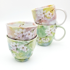 日本制BLOOM樱花陶瓷红茶咖啡饮料马克杯汤吞手握杯煎茶拿铁杯